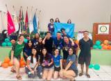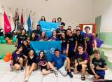 Ao redor e a frente vários jovens com camisetas do Interagindo scoob-doo.