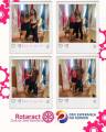 No card contém 3 molduras com fotos. Sendo uma na parte superior central: 7 jovens com a bandeira rosa do Rotaract aberta. Lado esquerdo o banner de empoderamento de meninas e atrás o pavilhão nacional com as bandeiras. Lado direito uma mesa com toalha bege e uma janela com cortina branca. Ambiente fechado - sala.