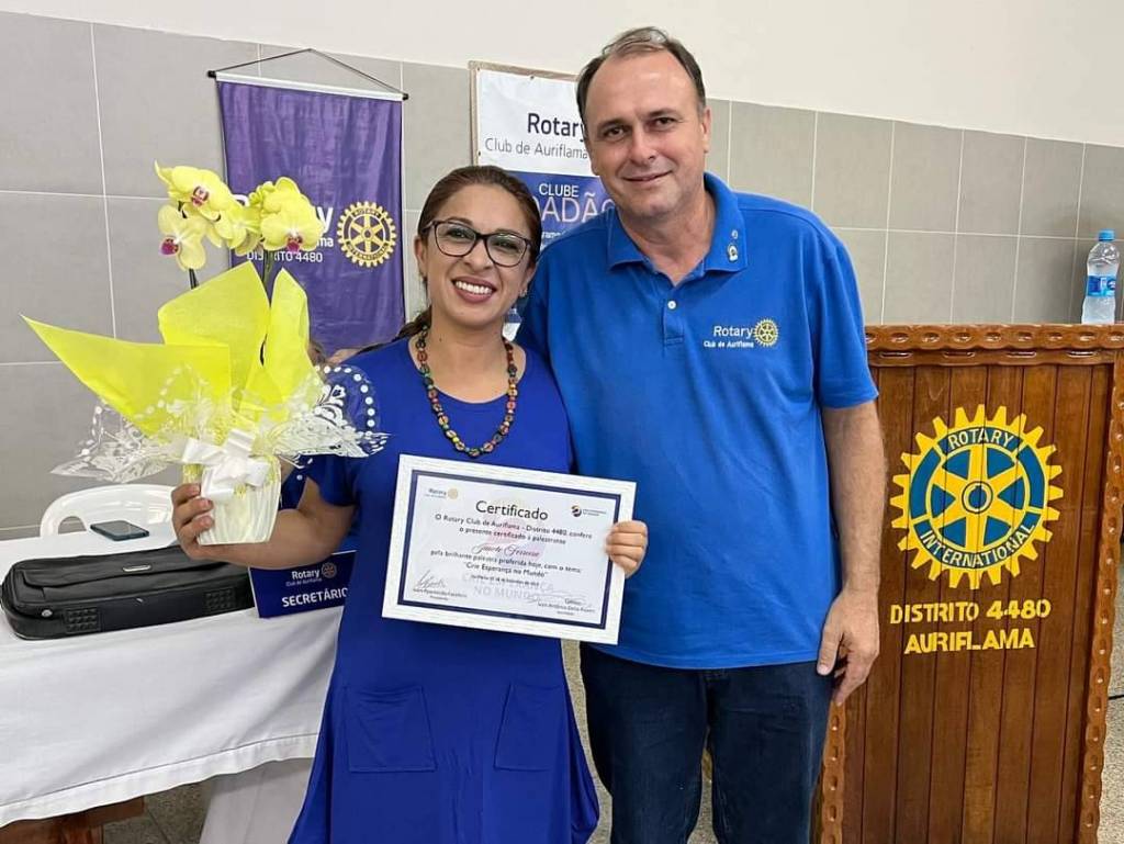 O Rotary Club de Auriflama realizou nesta última quinta-feira uma palestra com a Psicanalista Janete Ferreira com o tema CRIE ESPERANÇA.