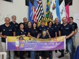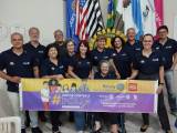 Segurando a faixa (atrás) 4 homens e 7 mulheres. Todos com camiseta azul marinho do Rotary.