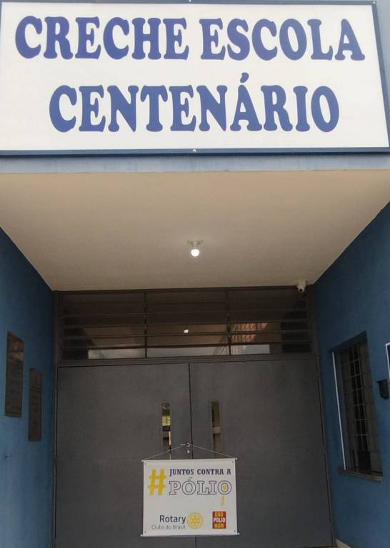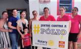 Na parte inferior esquerda: logo do Rotary International e direita o logo da end pólio now.