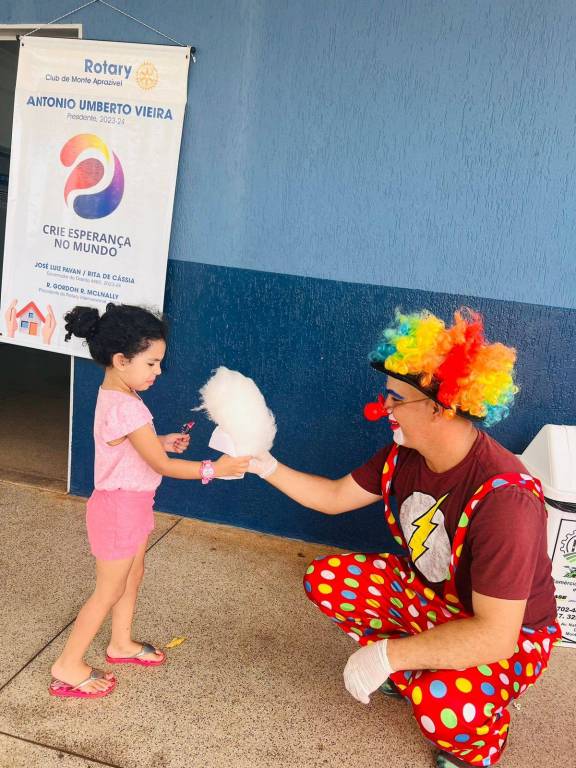 Com a presença do Zé gotinha e do palhaço Carequinha, distribuímos pirulitos, pipoca e algodão doce.
