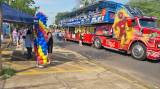 Atrás aparenta ser um trenzinho com algumas pessoas sentadas.