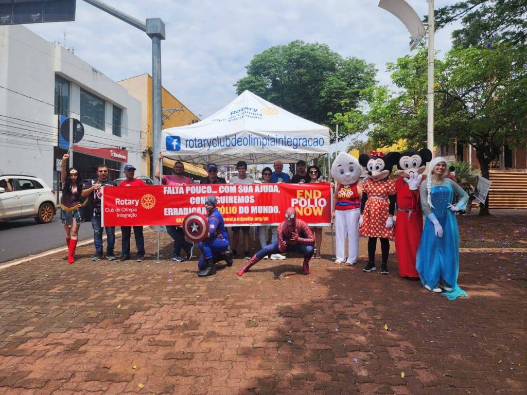 O Rotary e o Rotaract Club de Olímpia - Integração uniram forças com os Super Heróis na campanha da erradicação da Poliomielite na cidade. Vamos todos combater essa doença.