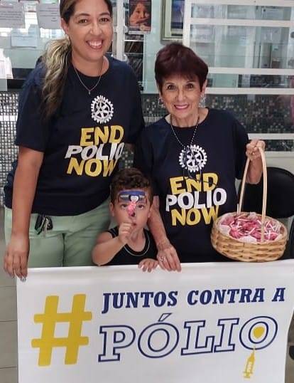Na parte inferior lado esquerdo o logo do Rotary Club do Brasil e lado direito logo do end polio now.