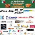 Na primeira linha de logotipos, da esquerda para a direita, vemos: "Allma Jeep", um logotipo com um símbolo abstrato em azul e a palavra "Javep" em letras pretas com um símbolo da Chevrolet ao lado, e "Primo Rossi" em azul claro, "ABC 6 anos" em azul escuro com o número 6 em amarelo e a palavra "consórcio nacional" em azul claro abaixo.