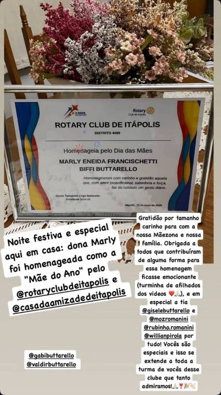 No dia 13.05, a sede do Rotary Club de Itápolis foi palco de uma emocionante Festiva em comemoração ao Dia das Mães!